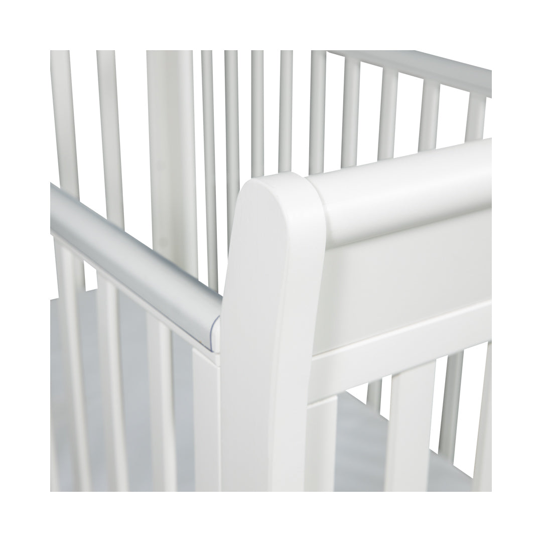 • Durable craftsmanship: Made from solid birch wood and finished in a crisp white lacquer, the cot is built to last and easy to maintain.