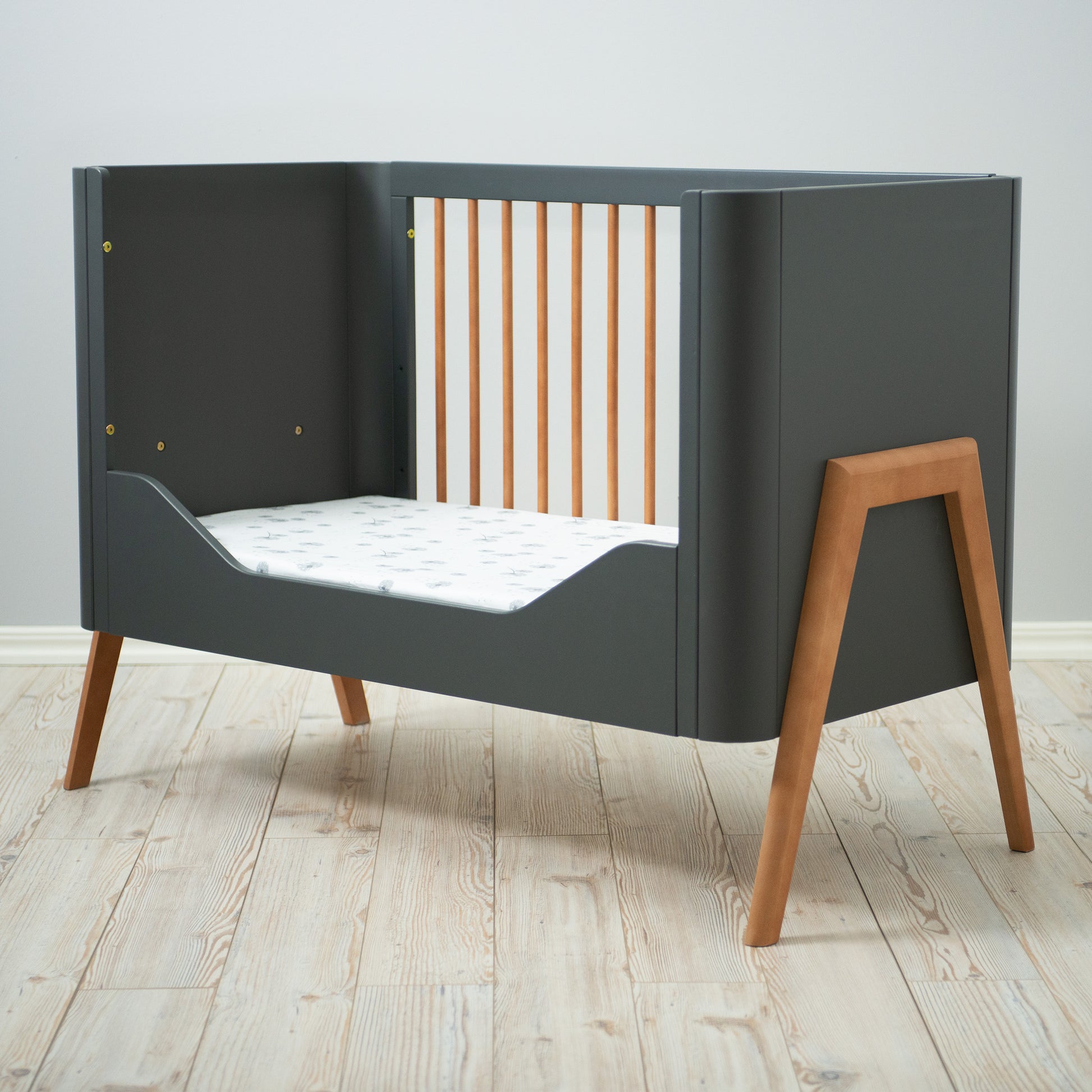 Cot Torsten Seal Grey/Teak Collection with Junior Conversion Rail