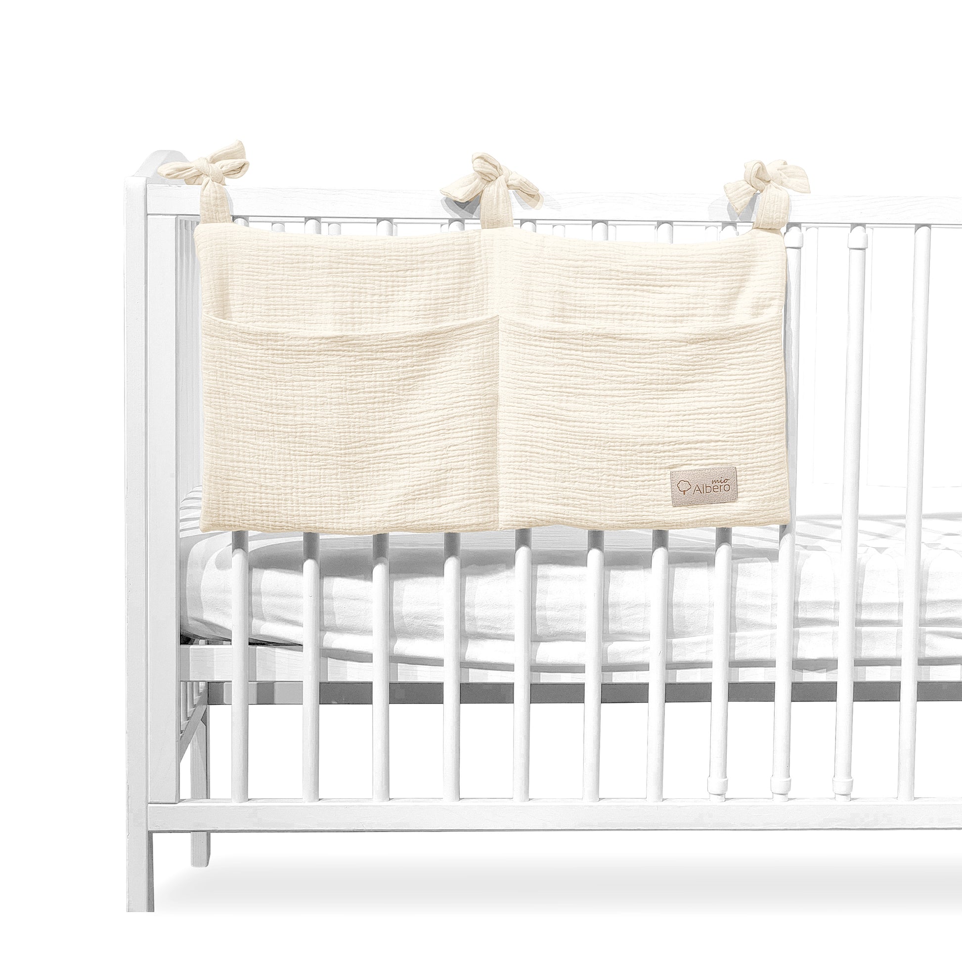 Keep your baby’s essentials within easy reach with the AlberoMio Muslin Cot Organizer is a beautifully crafted storage solution that combines functionality with soft, breathable design. Made in Poland from Oeko-Tex certified muslin, this organizer attaches securely to your baby’s cot, helping you stay organized while adding a gentle touch to your nursery décor.